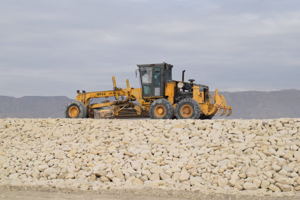 – اجرای عملیات خاکبرداری، تحکیم بستر، خاکریزی، فیلتر ریزی و خشکه چینی با سنگ لاشه (ریپ رپ ) و احداث جاده دسترسی در بخش میانی شمالی و میانی جنوبی هر کدام حدود 2300 مترطول